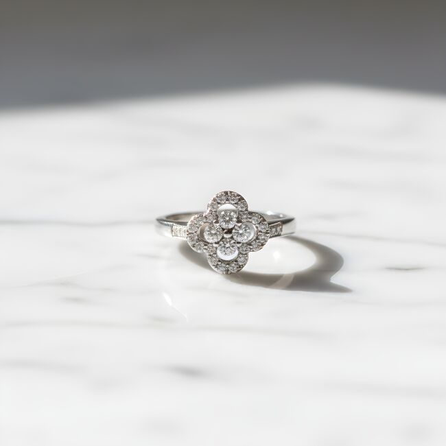 Bouquet Bague Morganne Bello Bouquet en or jaune, nacre blanche, quartz rose et diamants