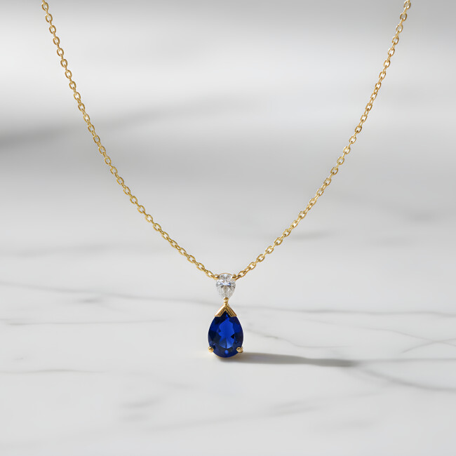 Pendentif or jaune saphir taille poire et diamant taille poire