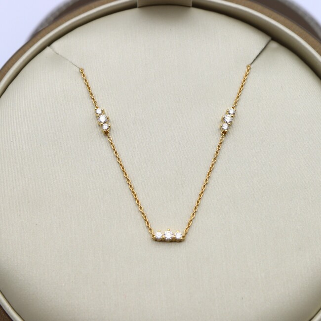 Collier or jaune trois motifs de trois diamants