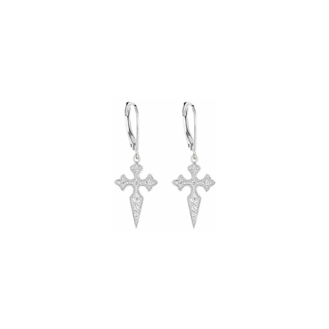 Croix Boucles d'oreilles Stone Paris Croix en or blanc et diamants