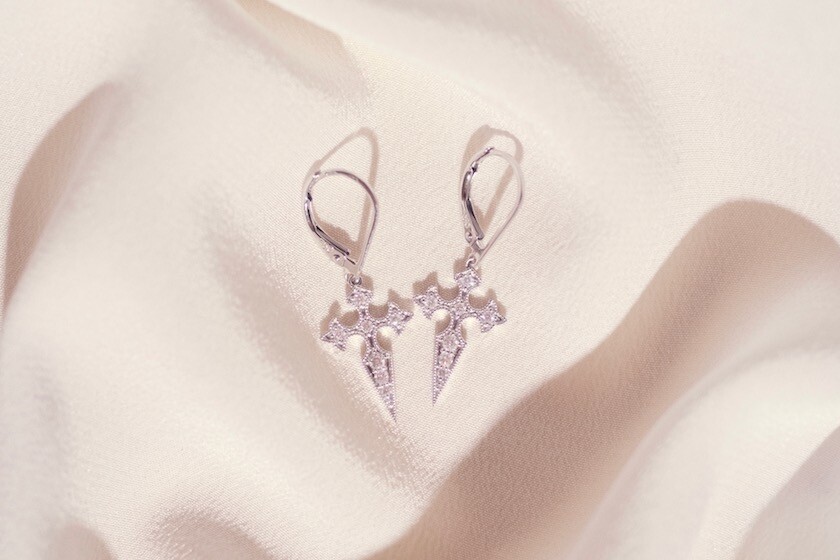 Croix Boucles d'oreilles Stone Paris Croix en or blanc et diamants