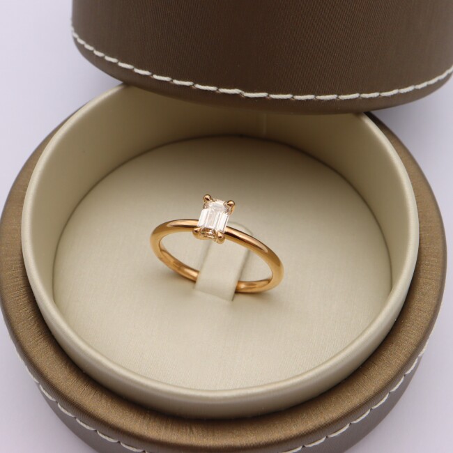Bague or jaune, émeraude taille ovale, diamants poire et brillant