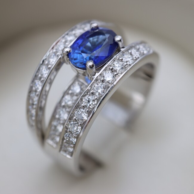 Bague or blanc, saphir et diamants