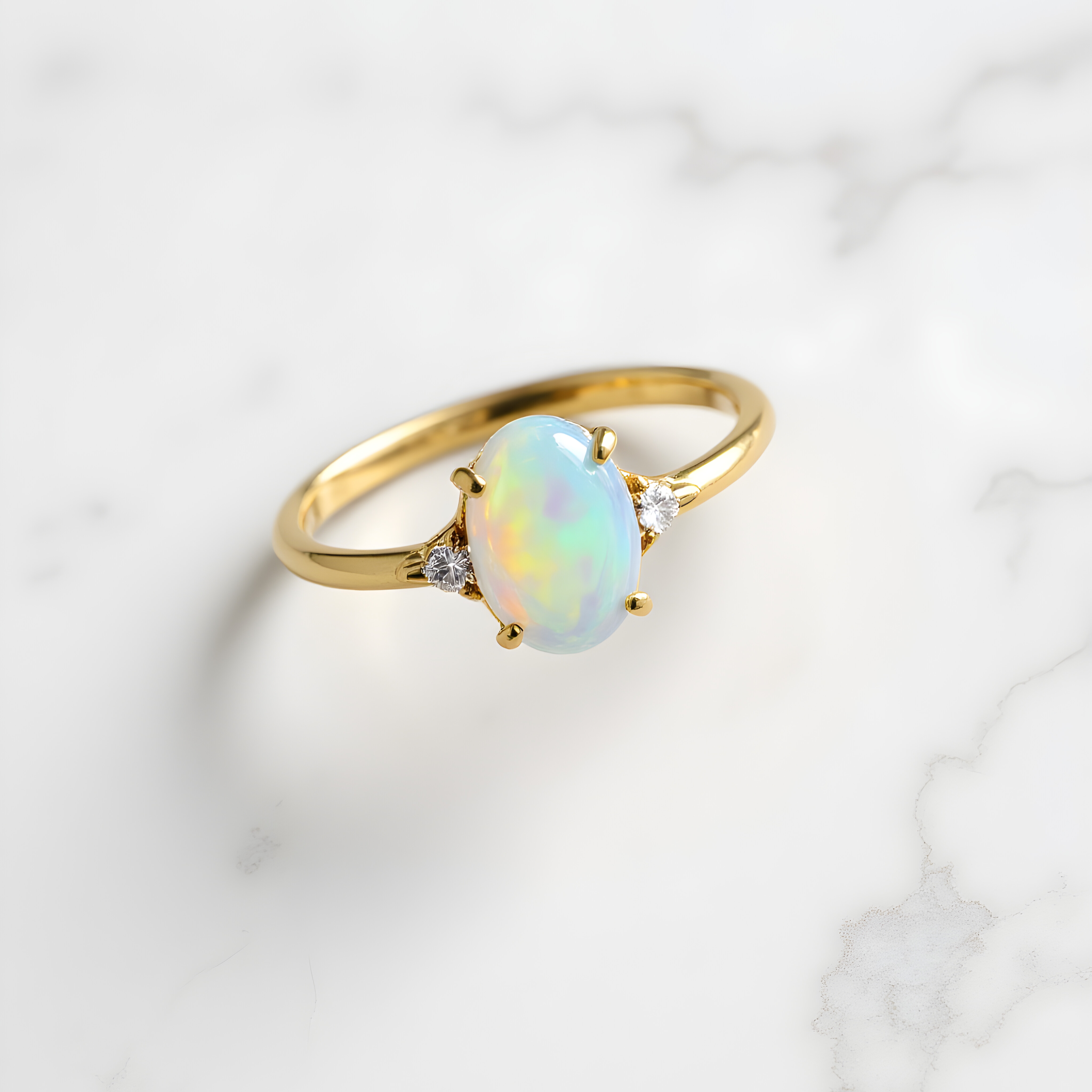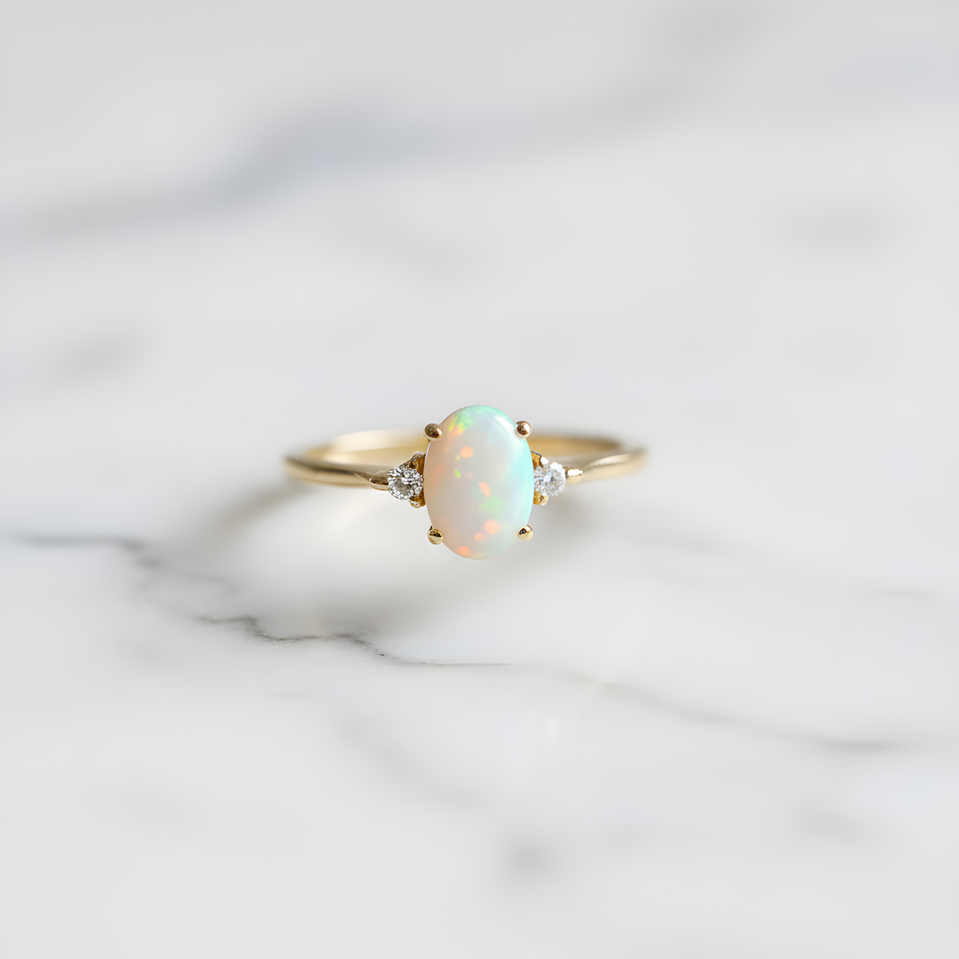 Cette bague associe la poésie de l’opale blanche à la brillance discrète des diamants, dans une composition raffinée et intemporelle. Son design délicat en fait un bijou lumineux et féminin, idéal pour un port quotidien comme pour accompagner des moments précieux.