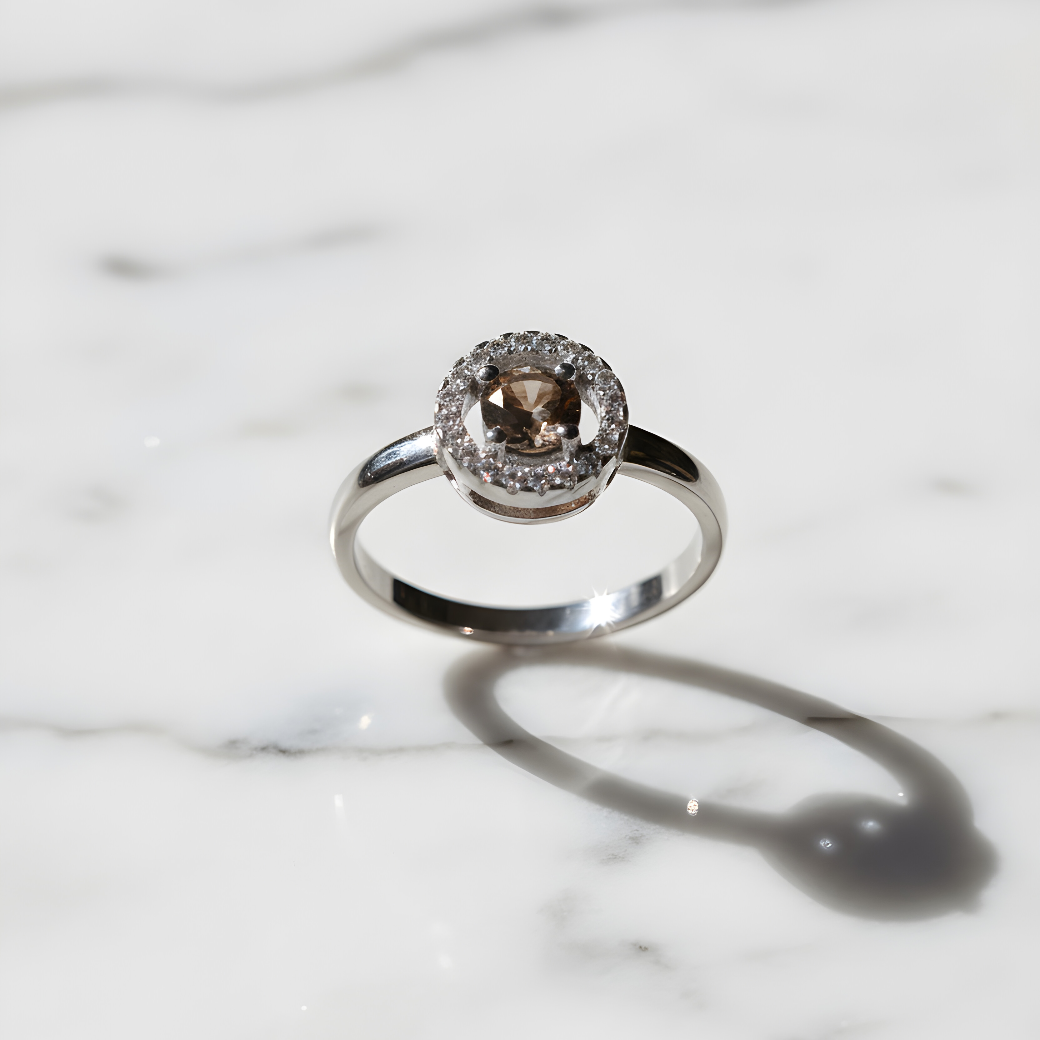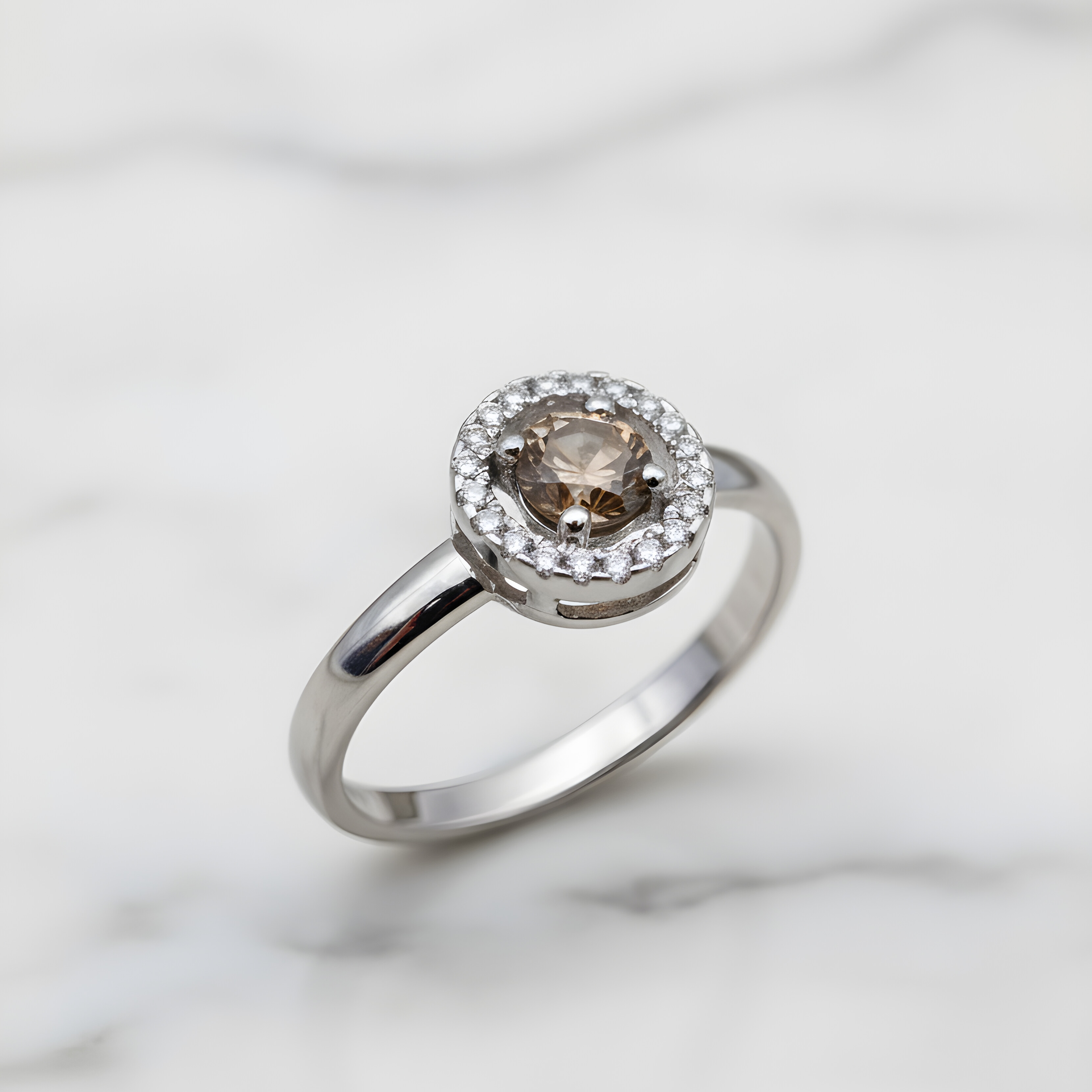 Bague or blanc diamant chocolat et entourage diamants