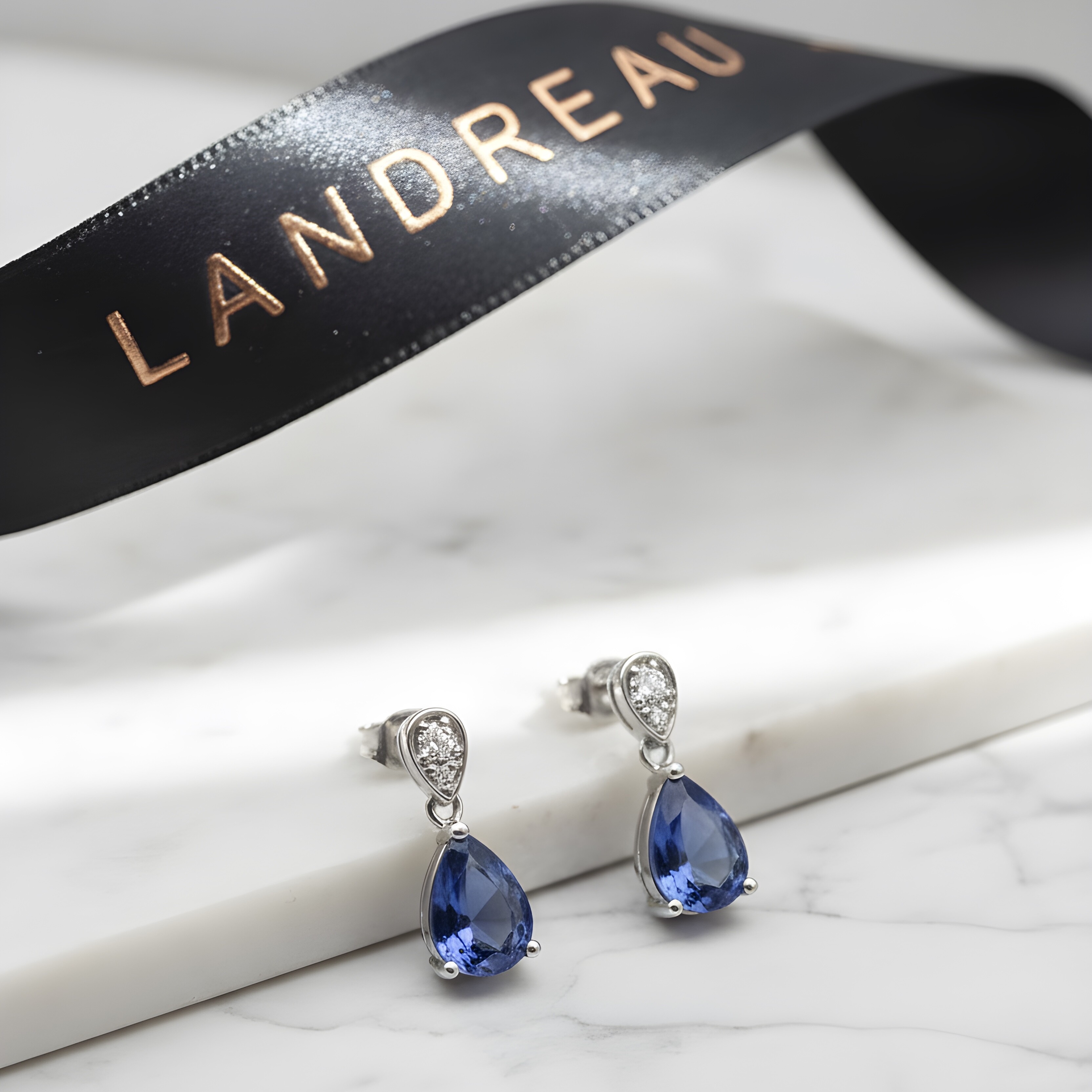 Un éclat de diamants en partie haute, apportant contraste et brillance, et mettant en valeur la silhouette élancée des saphirs.