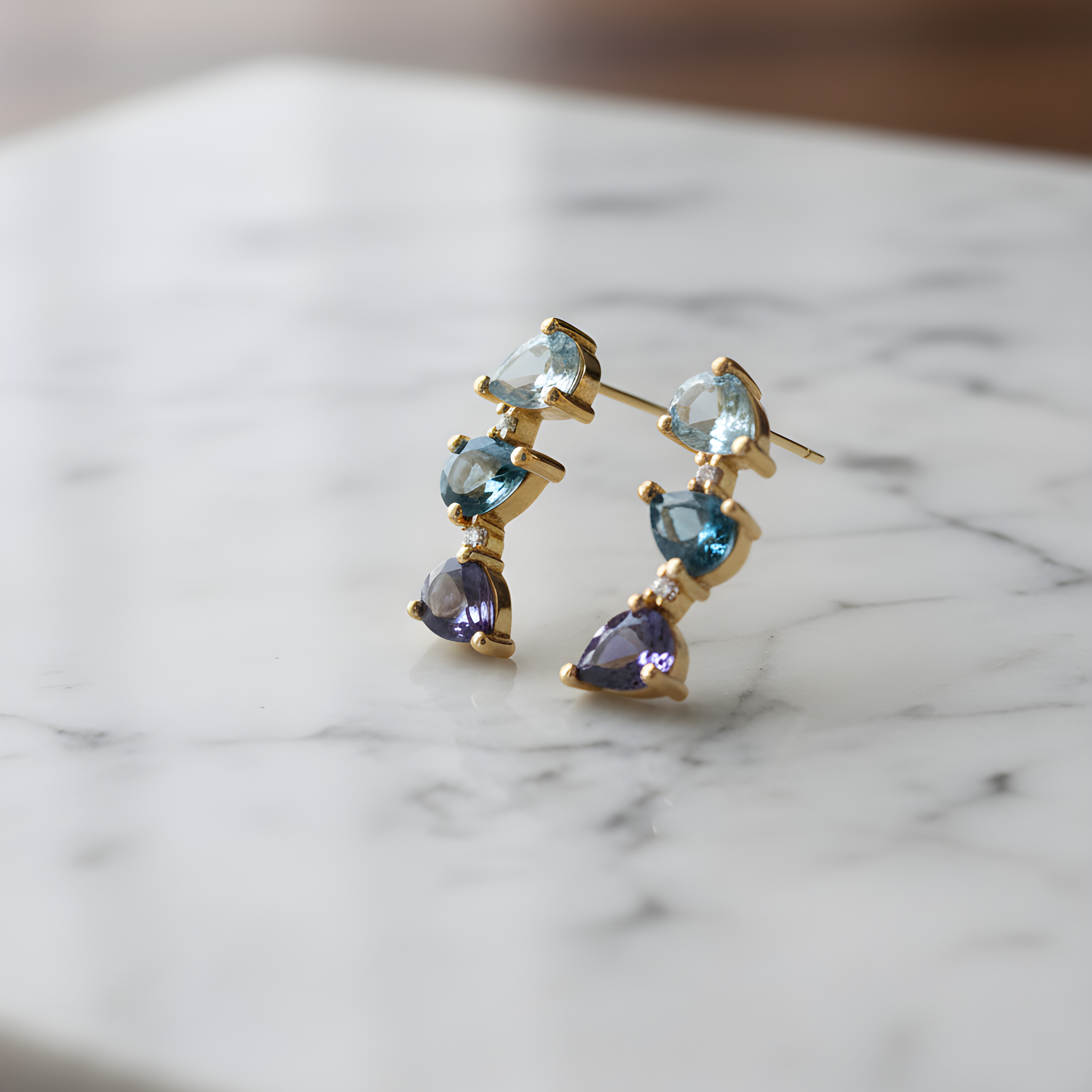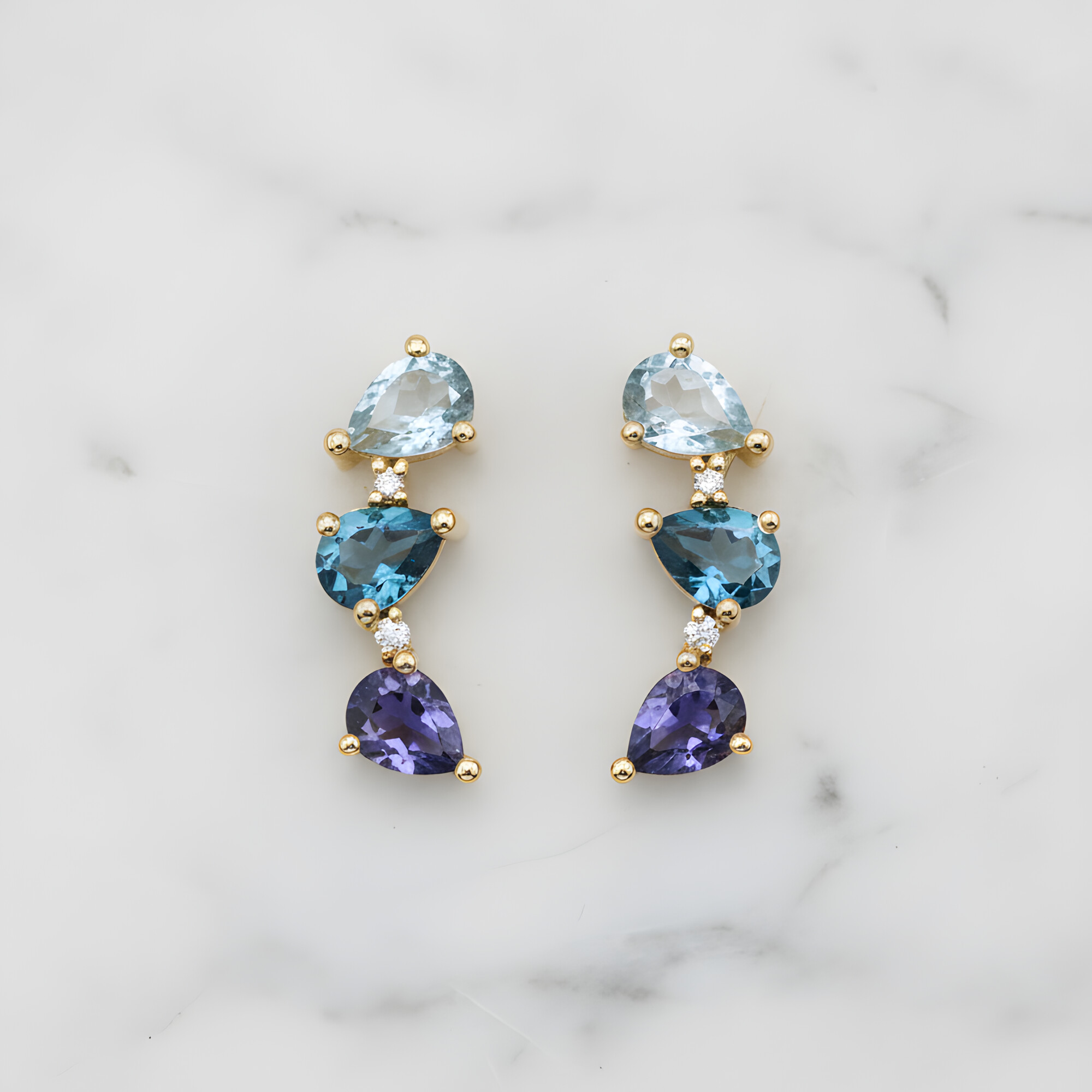 Ces boucles d'oreilles en or jaune 750/1000ᵉ captivent par leur élégance intemporelle et leur design raffiné. La délicate forme de poire met parfaitement en valeur l'éclat des pierres fines l'aigue-marine au bleu céleste et la topaze scintillante créant un jeu de lumière fascinant à chaque mouvement. L'or jaune 750/1000ᵉ, gage de qualité exceptionnelle, sublime le teint et s'harmonise avec toutes les tenues.