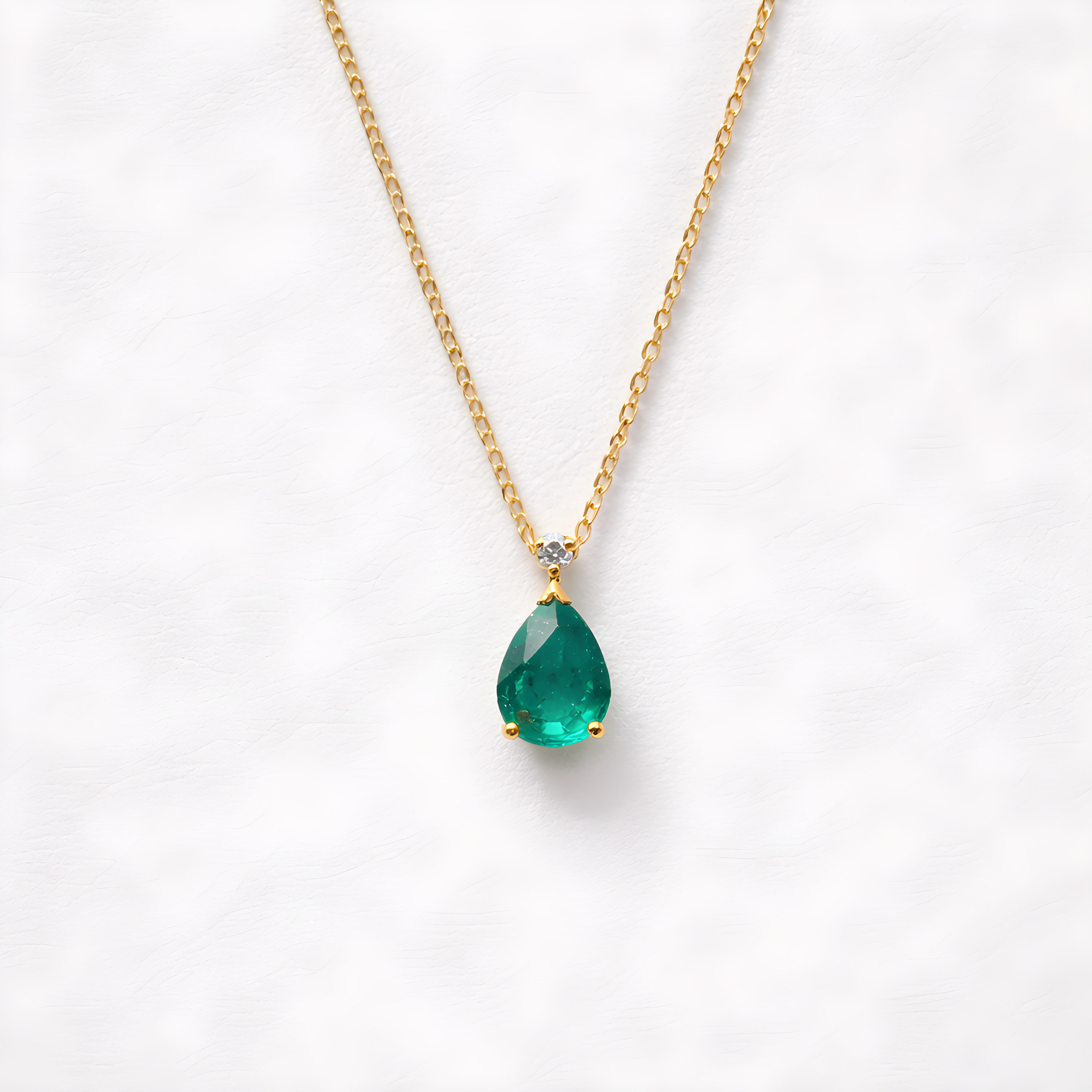 Ce collier en or jaune 750/1000e séduit par son élégance fine et intemporelle. Montée en pendentif, l’émeraude taille poire dévoile une couleur verte intense, mise en valeur par la chaleur de l’or jaune et la brillance du diamant.