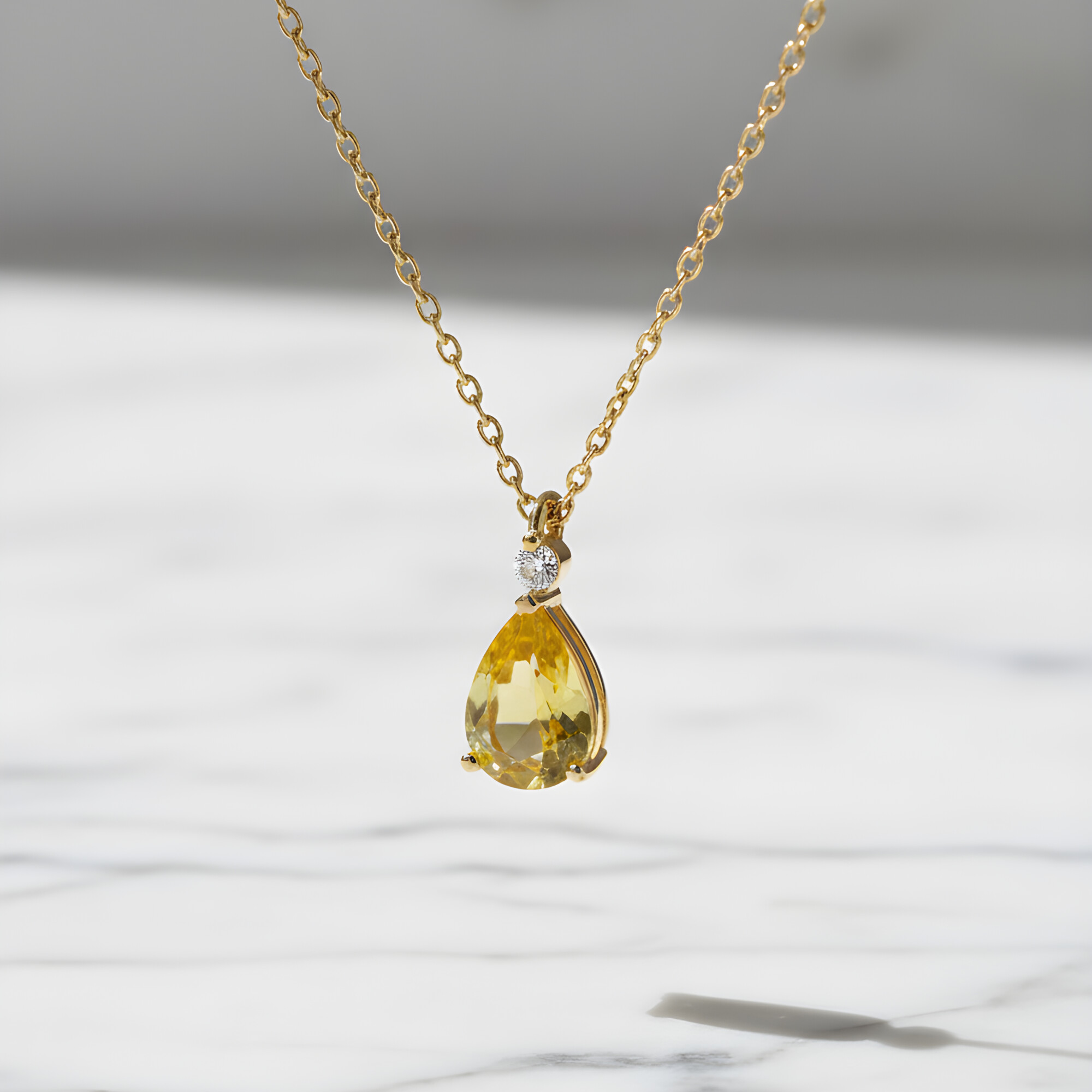 Collier or jaune saphir jaune taille poire et diamant