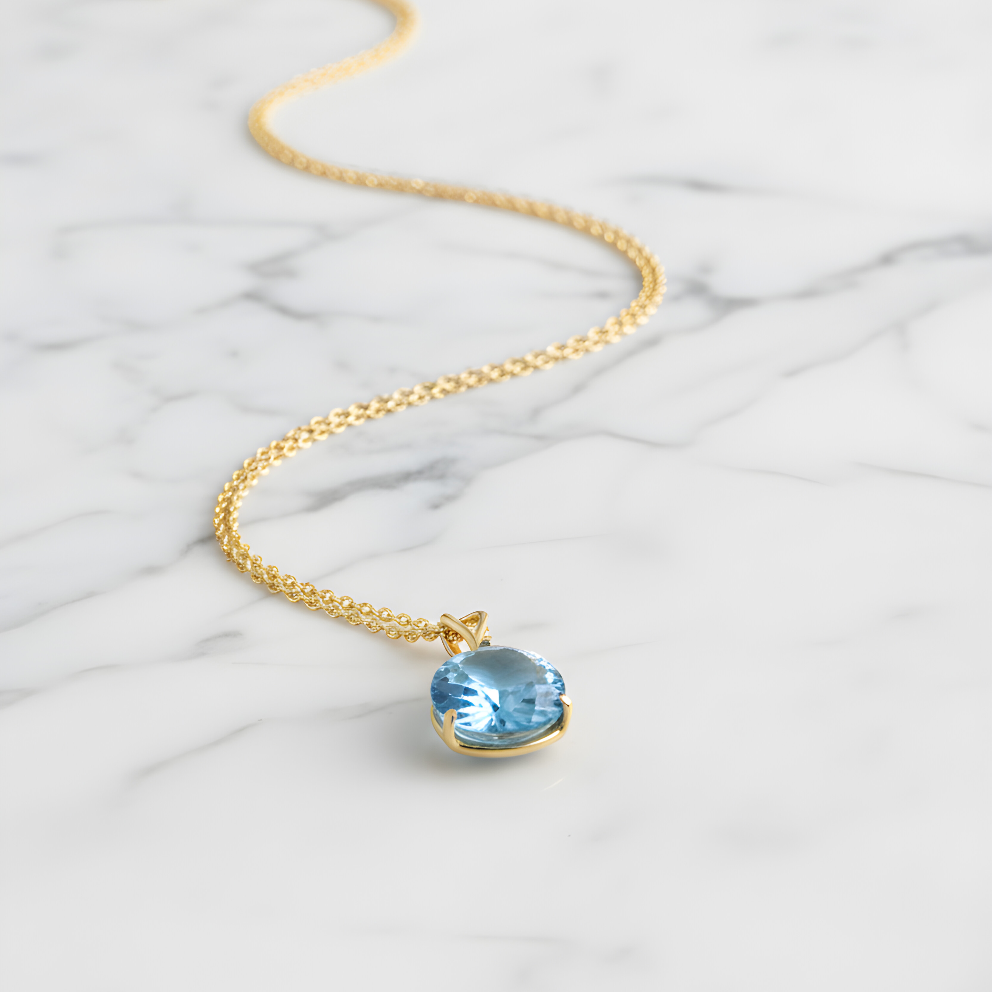Ce pendentif associe la fraîcheur cristalline de la topaze bleue à la chaleur de l’or jaune dans une composition raffinée et intemporelle. Facile à porter au quotidien comme lors d’occasions plus habillées, il apporte une touche de lumière naturelle et élégante à chaque tenue.