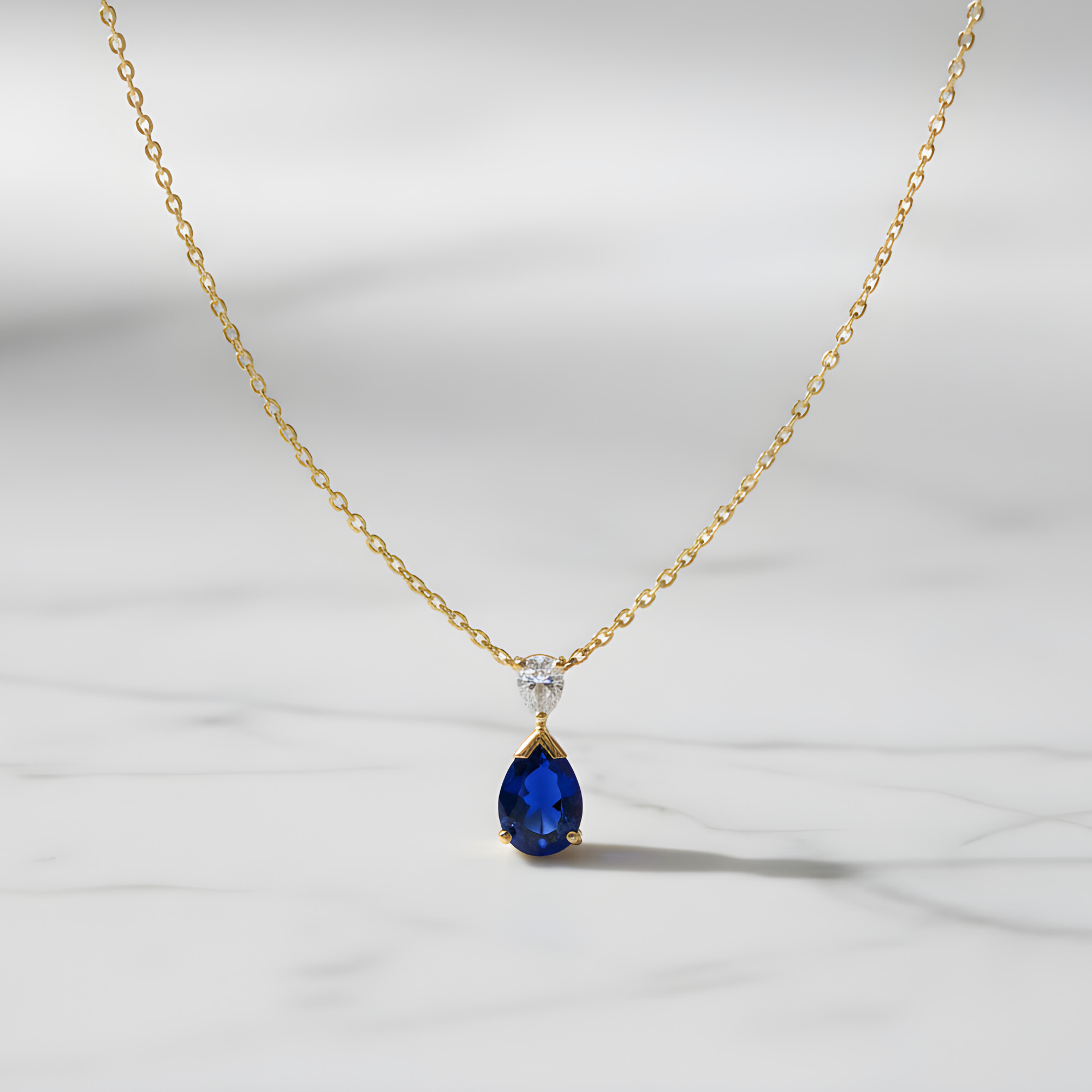 Ce pendentif associe la noblesse de l’or jaune à la profondeur du saphir et à l’éclat subtil du diamant, dans une composition à la fois raffinée et intemporelle. Son design élancé en fait un bijou facile à porter, aussi élégant au quotidien que lors d’occasions plus précieuses.